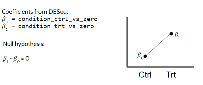 Here, the gene expression is modeled as seen below where \(\beta_0\) is the intercept and \(\beta_1\) is the coefficient for the treatment’s effect: